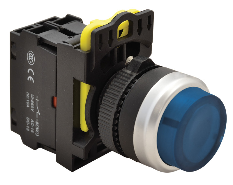 Világító nyomógomb, kiálló kék IP42
