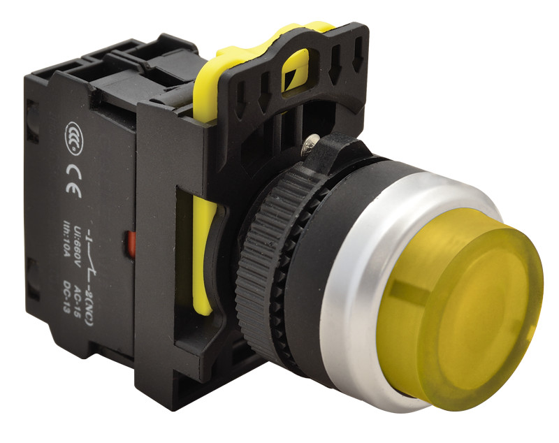 Világító nyomógomb, kiálló sárga IP42