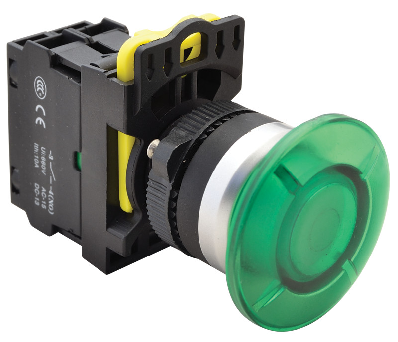 Gombafejű világító nyomógomb, zöld