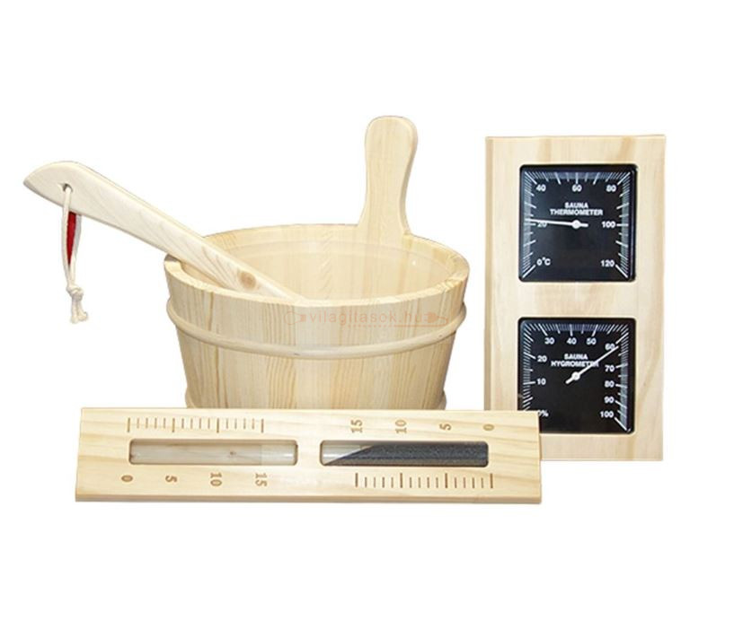 Acest set de saună din lemn de pin este potrivit pentru oricine dorește să-și echipeze sauna de acasă cu accesorii unitare, cu aspect natural. Poate fi și o idee practică de cadou pentru pasionații de saună, deoarece reunește într-un singur pachet piesele de bază necesare pentru utilizarea comodă și bine organizată a saunei.