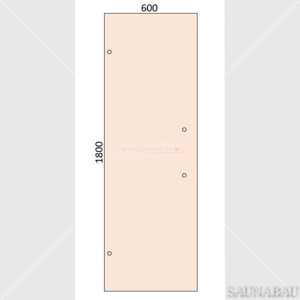 Panoul este livrat cu găuri preformate pentru balamale și mâner, ceea ce permite o montare mai rapidă și mai precisă. Găurile cu diametrul de 16 mm sunt compatibile cu majoritatea balamalelor și mânerelor standard pentru uși de saună. Distanțele dintre găuri sunt realizate din fabrică, contribuind la o suspendare stabilă și la o închidere sigură a ușii.
