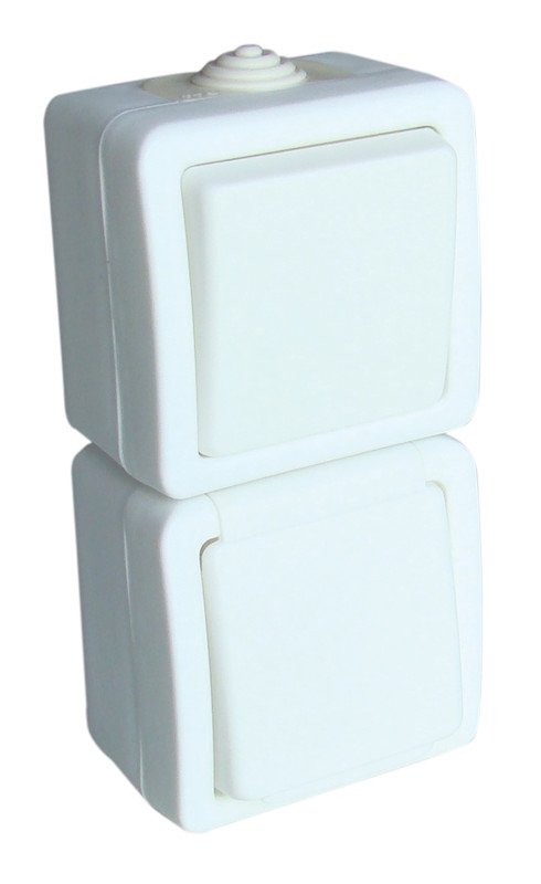 Falon kívüli váltókapcsoló+csatlakozóaljzat, csapos 16A/250VAC, IP54, (106)