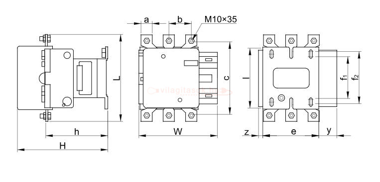 Nagyáramú kontaktor 660V, 50Hz, 205A, 110kW, 230V AC, 3×NO+1×NO