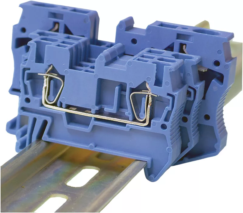 Nullavezető ipari sorozatkapocs, rugós, sínre, kék 0,2-2,5mm2, 800VAC, 31A