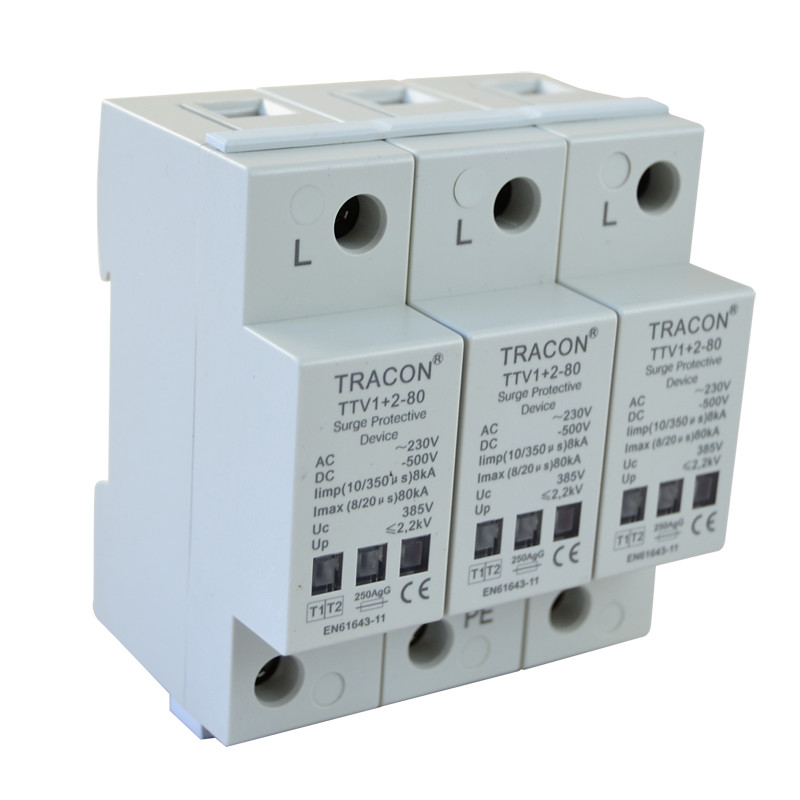 230/400 V, 50 Hz, 8 kA (10/350 us) 40/80 kA (8/20 us), 3P