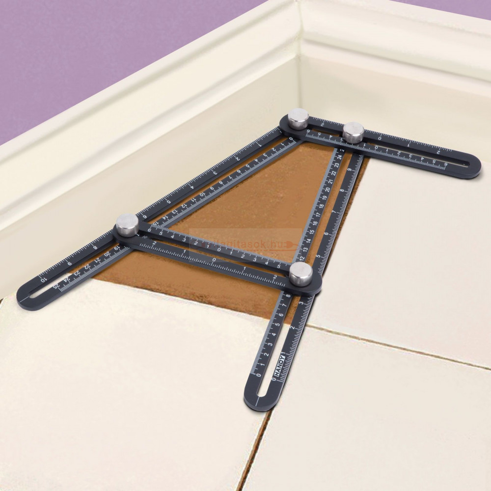Fém négyoldalú vonalzó, szögmásoló - 31 x 18 cm