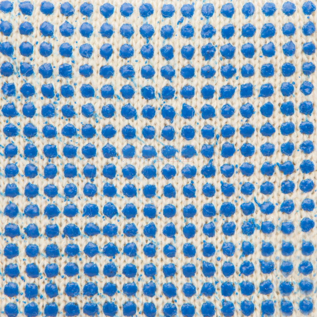 Pamutból készült, gumis mandzsettájú kesztyű, csúszásmentes gumi pöttyözéssel a tenyerén.