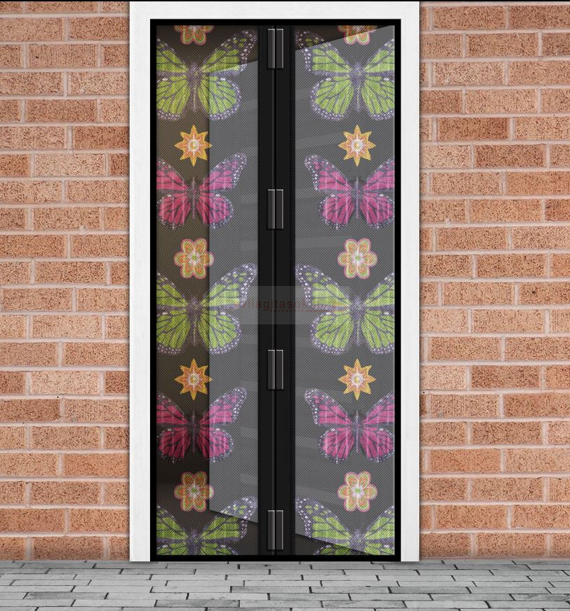 Szúnyogháló függöny ajtóra -mágneses- 100 x 210 cm - virágos pillangós