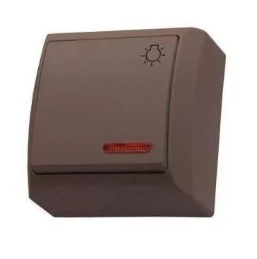 Mini falon kívüli nyomókapcsoló lámpajellel jelzőfényes barna
