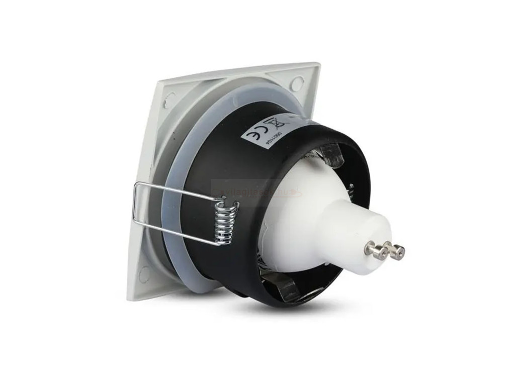 Kazettás és gipszkarton álmennyezetbe építhető, süllyeszthető szpot lámpatest, rugós füles rögzítéssel.