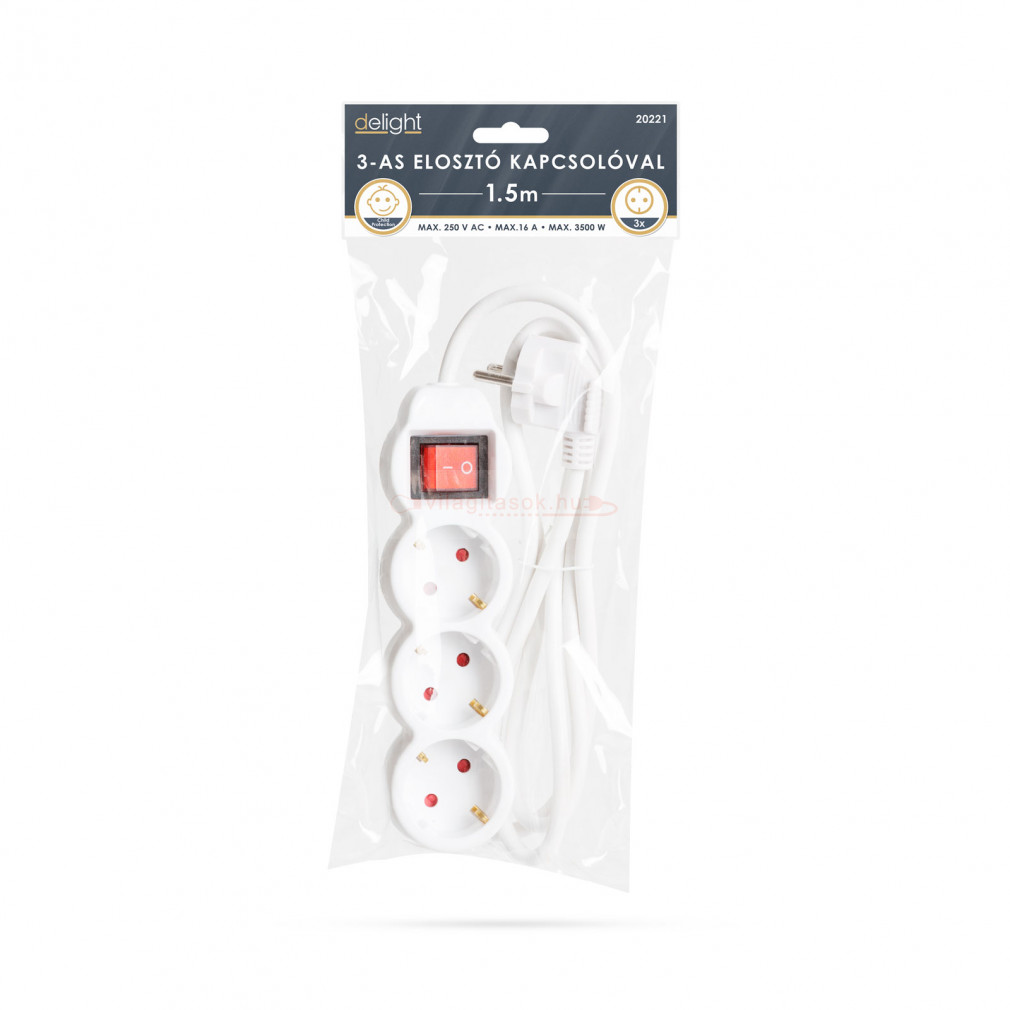 Általános, fehér elosztó kapcsolóval, amely használata javasolt háztartásban, irodákban. Jó minőségű, vastag szigetelése megvédi a kábelt a sérülésektől, a kábel esetleges megtörésétől.