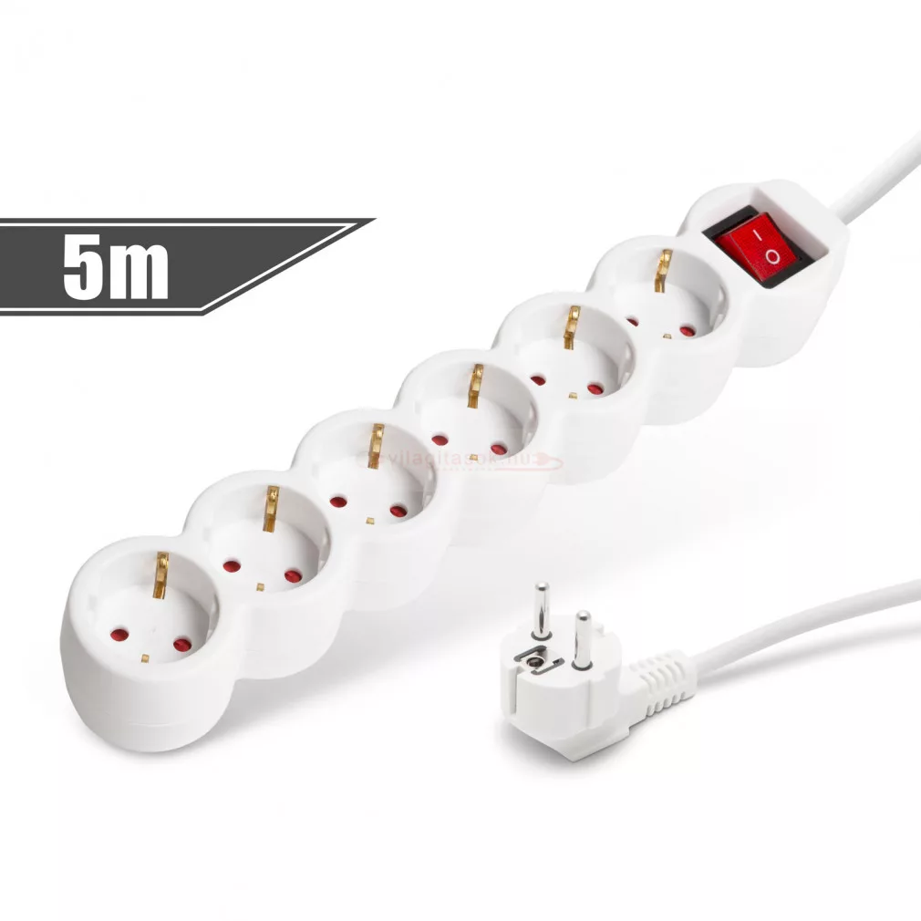 Általános, fehér elosztó kapcsolóval, amely használata javasolt háztartásban, irodákban. Jó minőségű, vastag szigetelése megvédi a kábelt a sérülésektől, a kábel esetleges megtörésétől.