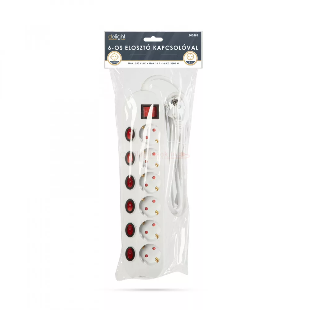6-os elosztó - 6+1 kapcsolóval - 250 V • 16 A - 1,5 m