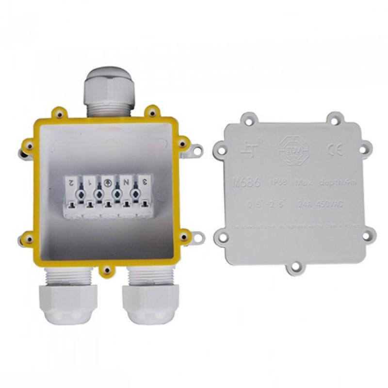 3-as elosztású vízmentes kötődoboz led reflektorhoz. IP68 védettsége miatt víz alatt is használható.