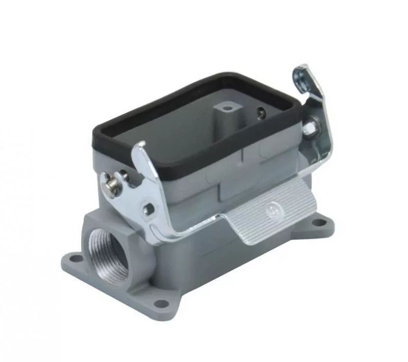 Ipari nehézcsatlakozó,dugalj ház,10P+F/16A,rögzítókar,falon kívüli,oldalsó bevezetés,zárt hátlap