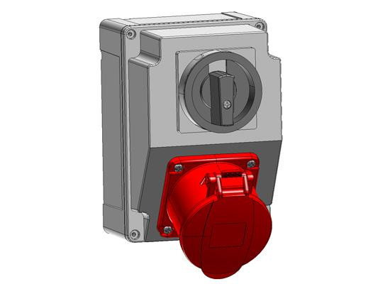 120X170mm, 1x(5P 16A-IP44) BEÉPÍTETT DUGALJ+1db FORGÓKAPCSOLÓ (32A)