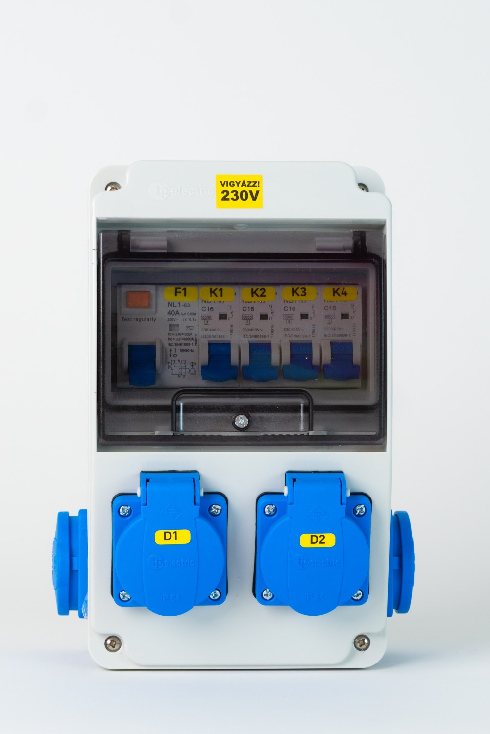 - Előlapon: 2 x ( 2P+F) háztartási dugalj