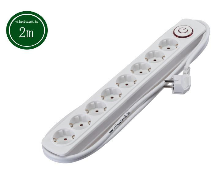 Elmark 8 dugaljas hálózati elosztó, kapcsolóval 2m