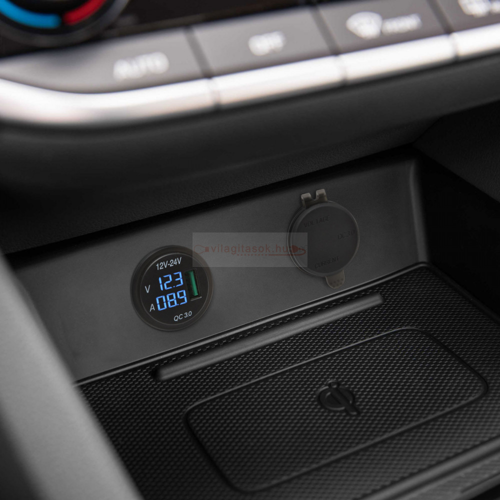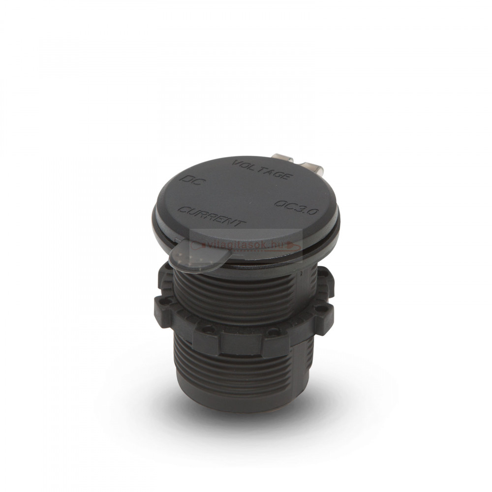 Autós szivargyújtó helyére beépíthető USB aljzat és feszültségmérő. Használatával nincs szükség a szivartyújtóba dugható USB adapterre, az egész szivargyújtó aljzat cserélhető, ezáltal megelőzhetőek az esetleges érintkezési hibák. A rejtett, LED kijelző kék színnel mutatja a pillanatnyi feszültséget és áramerősséget. A gumi zárókupak megakadályozza, hogy por, szennyeződés jusson az USB portba. Ez a zárókupak tetszés szerint eltávolítható.