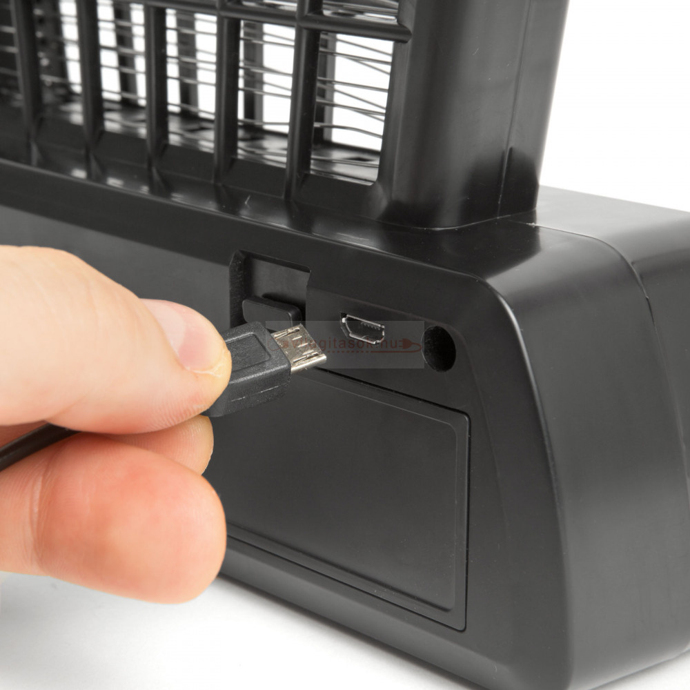 Dupla tápellátással rendelkező asztali rovarcsapda. A kellemetlen csípő szárnyas rovarokat (pl. a szúnyogokat) és kis légyféléket az ultraibolya fény vonzza. Útjukon a fényforrás felé nekirepülnek a feszültség alatt lévő elektródának, és az gyorsan, fájdalommentesen és higiénikusan megöli őket. Használható a tartozékként kapott USB kábel segítségével és akkumulátoros tápellátással is. Ha az USB tápellátás megszűnik, a készülék akkumulátoros módra vált.