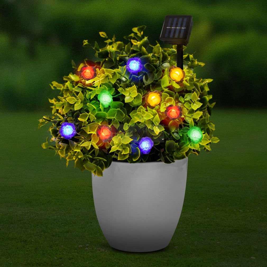 LED szolár fényfüzér - rózsa - 2,3 m - 20 LED - színes