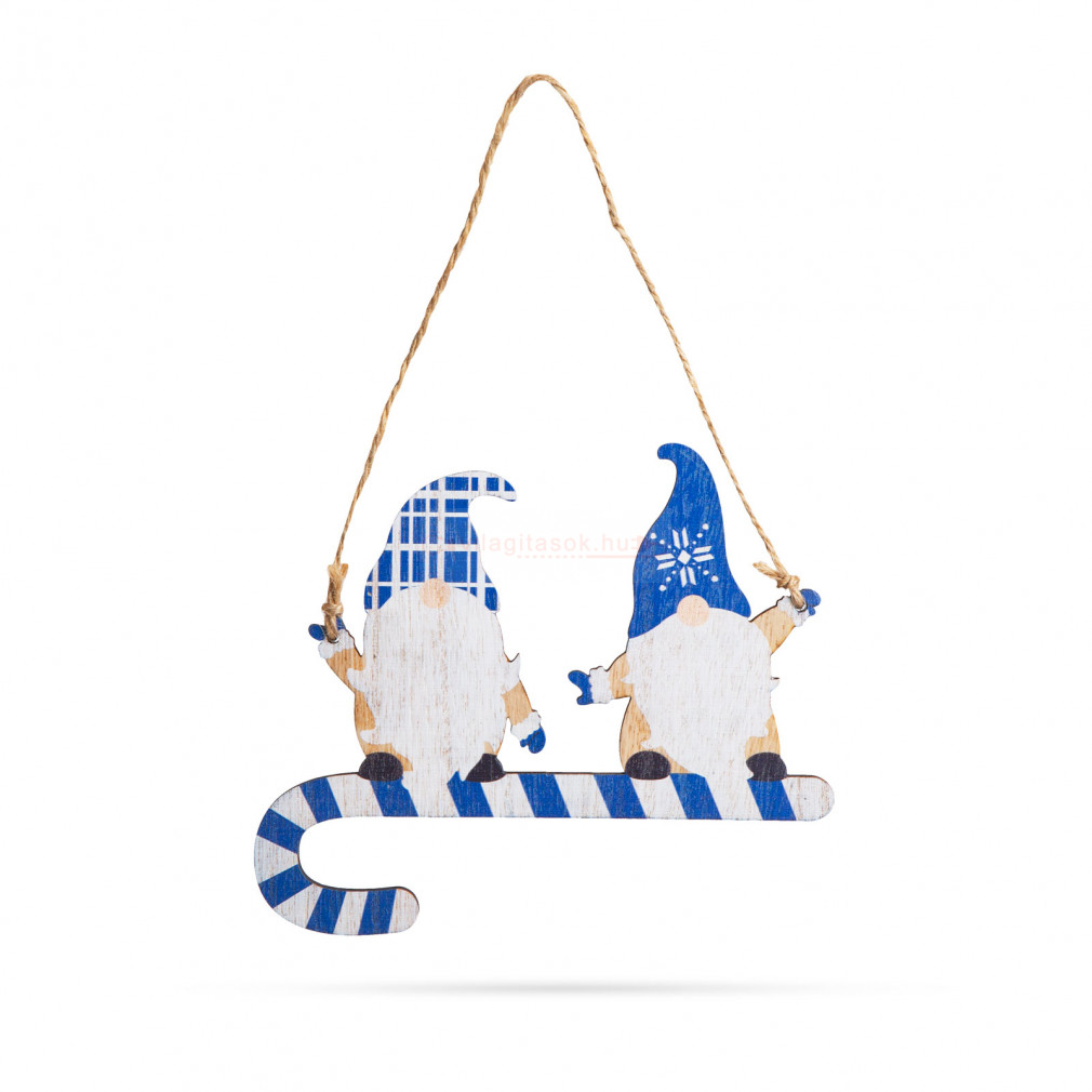 Ez a gyönyörű fából készült manó figurás dísz tökéletes kiegészítője lehet a karácsonyi dekorációnak otthonában. Szépen kidolgozott, aranyos manó figurák, amelyek cukorboton állnak, ami az ünnepi hangulatot és vidámságot sugallja. A fából készült díszek, melegséget és természetességet kölcsönöznek bármilyen ünnepi dekorációnak. A kidolgozott, részletesgazdag festés gondoskodik az aprólékos és szemet gyönyörködtető megjelenésről. A figura egy erős, de könnyű fából készült darab, amely felakasztható az otthona különböző pontjain.