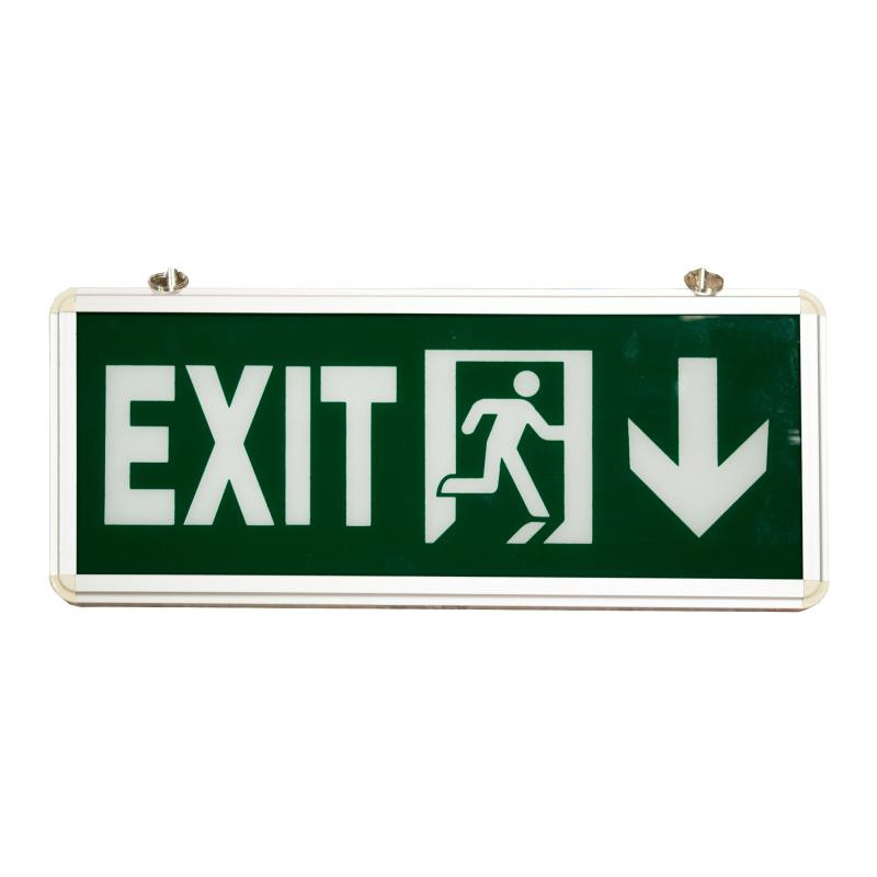 Mennyezetről függesztve felszerelhető kijáratjelző lámpa, mely folyamatosan világít (állandó üzemű). A feszültség elvétele után még 1,5 órán át képes világítani, így jelezve a kijáratot.