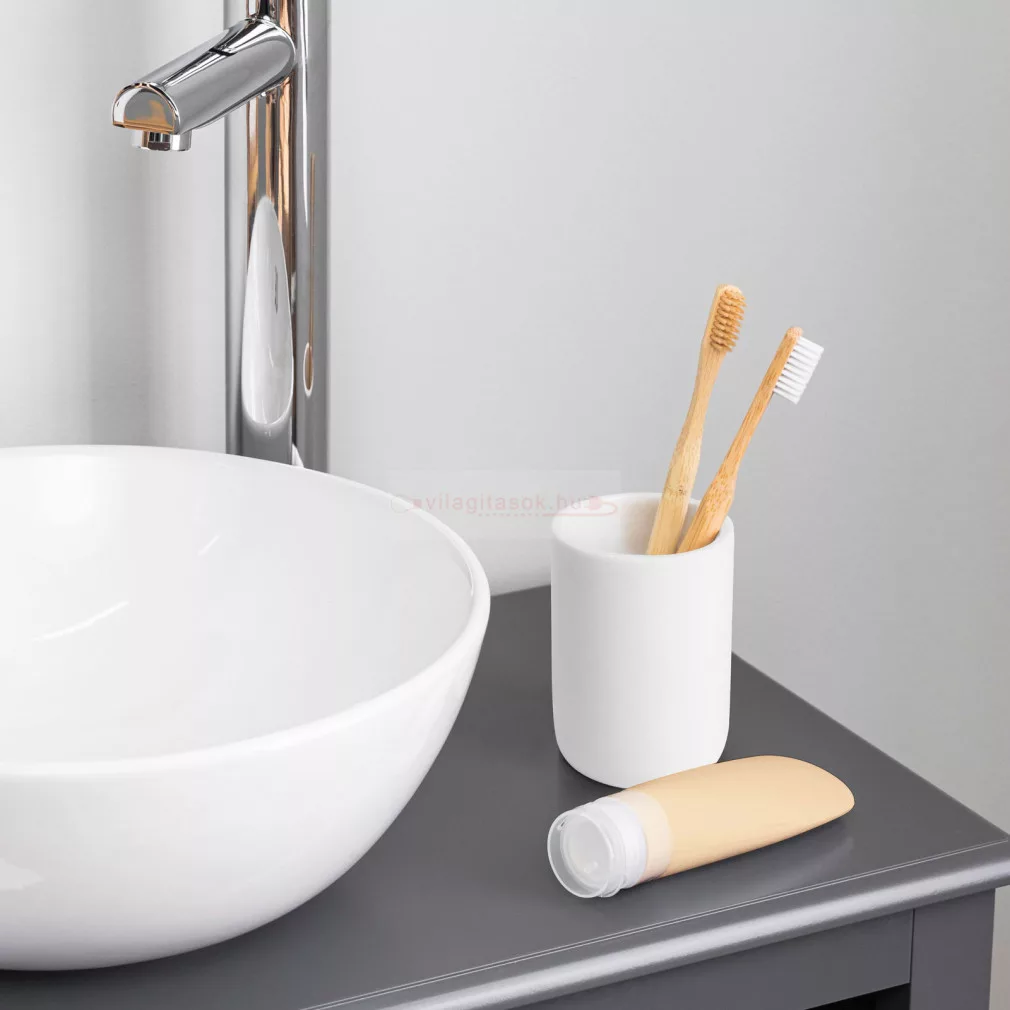 Ha a letisztult eleganciára és a modern designra vágyik, akkor ez a matt fehér fürdőszobai pohár tökéletes választás lehet. A matt fehér színű felület modern és elegáns jegyekkel ruházza fel a fürdőszobai enteriőrt. A gyantából készült pohár nem csak a megjelenésével fogja elvarázsolni, hanem tartósságával és praktikusságával is. Az anyagot könnyű tisztíthatóság jellemzi. A kompakt méretű pohár könnyedén elfér a mosdó környékén vagy a fürdőszoba polcán, így mindig kéznél lesz, amikor szüksége van rá. Legyen szó fogkeféről, fogkrémről vagy más apróságokról, ebben a fürdőszobai pohárban mindent stílusosan és rendezetten tárolhat.