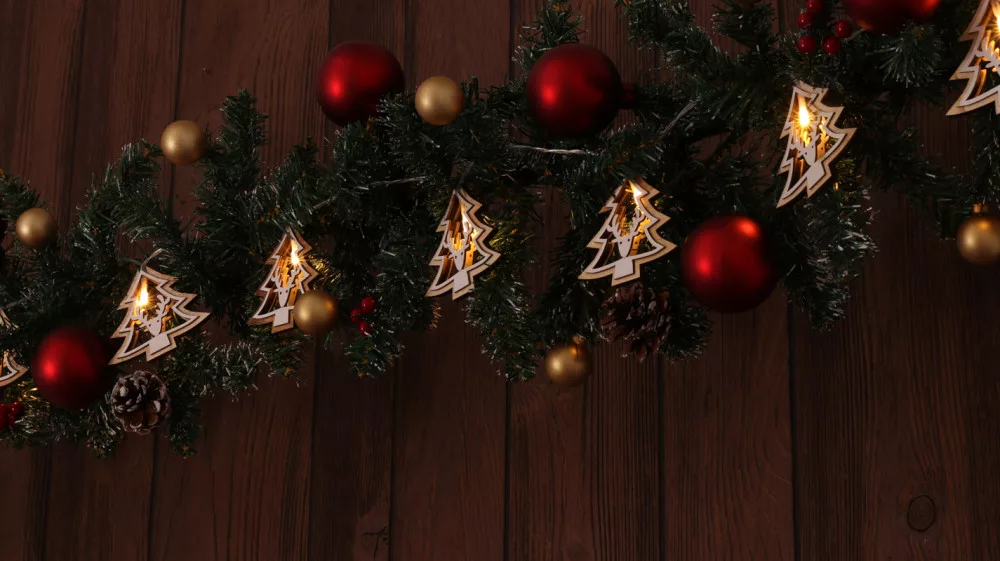 Karácsonyi LED fényfüzér dekoráció, fenyő, elemes, 6+18h, 10LED, 3000K, 2xAA
