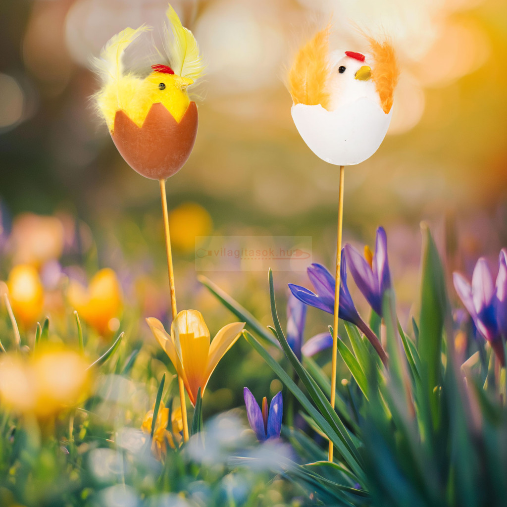Húsvéti dekoráció - csibe, tyúk - leszúrható - 28 cm