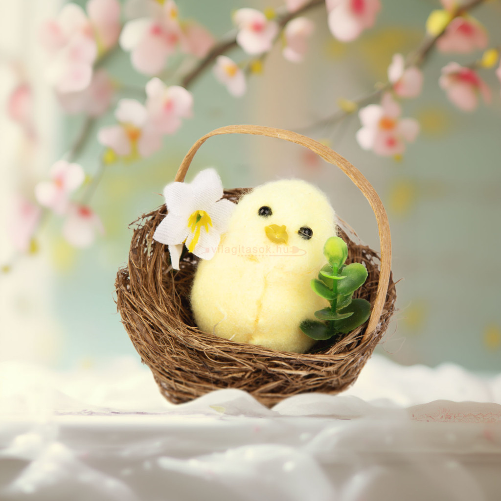 Húsvéti dekoráció - csibe fészekben - 7,5 x 7,5 cm