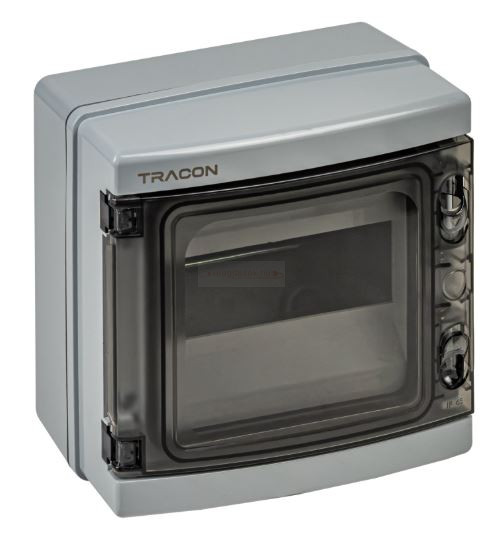 Kulcsszavak: falon kívüli elosztódoboz, IP65 elosztószekrény, 8 modulos elosztó, N/PE sín, átlátszó ajtós doboz, műanyag villanydoboz, DIN-sínes elosztó, vízálló elosztó