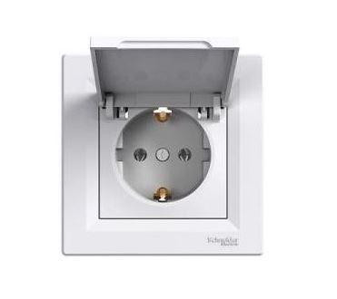 Schneider Asfora aljzat (dugalj) 2P+F, csapfedeles, komplett, fehér