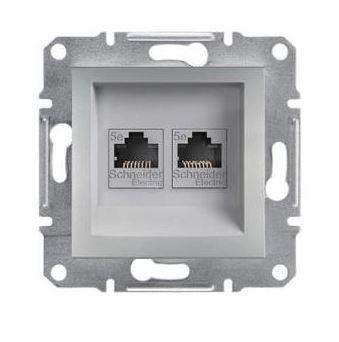 Schneider Asfora Számítógép aljzat Cat5e, 2-es, keret nélkül, alumínium
