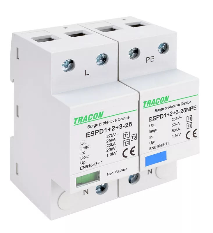 T1+T2+T3 AC típusú túlfeszültség levezető, egybeépített 1+1P 25kA 275V