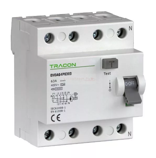 Áram-védőkapcsoló A típusú (fi-relé) 4P 63A 400V 30mA EVO