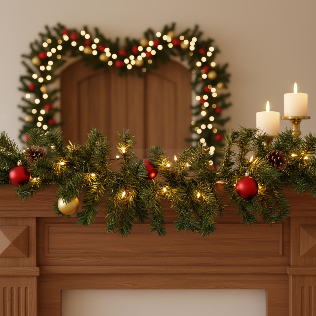 Fenyő girland - sötét zöld - 270 cm - PVC