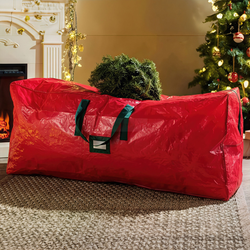 Műfenyő tároló táska - szőtt PVC - piros - 165 x 38 x 76 cm
