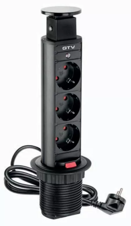 Irodai asztalba süllyeszthető elosztó 3db dugalj kerek fekete