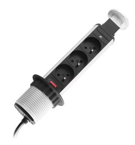 Irodai asztalba süllyeszthető elosztó 3db dugalj kerek ezüst