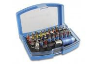acél S2 32 darabos Tartalma: Lapos 3/4/5/6; PH1/PH2/PH3/PH4; PZ1/PZ2/PZ3/; H3/H4/H5/H6; T10/T15/T20/T25/T27/T30/T40; Üreges T10/T15/T20/T25/T27/T30/T40; BIT befogó fej, mágnesezett; adapter