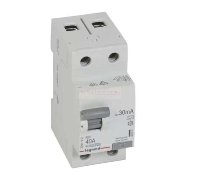 Áram-védőkapcsoló (Fi-relé) analóg 1P+N 40A 30mA A-típus 10kA RX3 LEGRAND