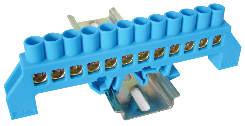 Szigetelt földelősín (N/PE), kék 230/400VAC, 100A, 8×12mm, 12P, IP20