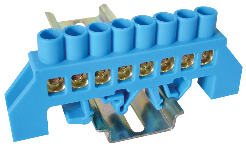 Szigetelt földelősín (N/PE), kék 230/400VAC, 100A, 8×12mm, 8P, IP20