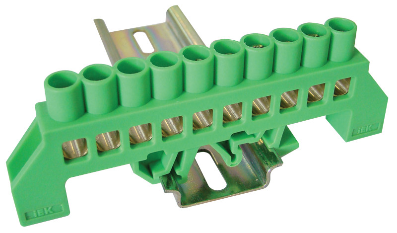 Szigetelt földelősín (N/PE), zöld 230/400VAC, 100A, 8×12mm, 10P, IP20