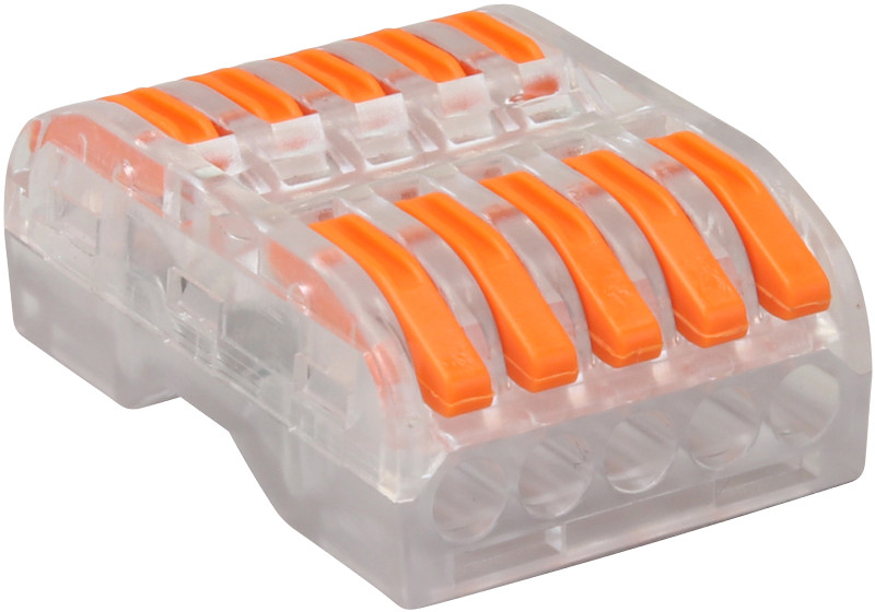 Csavar nélküli vezetékösszekötő, toldó, nyitható, átlátszó 0,5-4mm2, 32A, 400VAC 5P