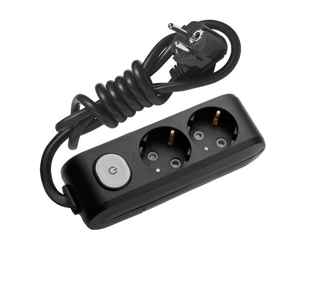 Kapcsolós elosztó 2-es (2 földelt) fekete, hosszabbító 2m vezetékkel