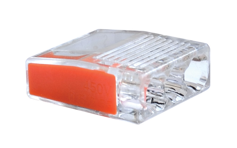 Csavar nélküli vezetékösszekötő, átlátszó/narancs 3×0,5-2,5mm2, 450VAC, max. 16A