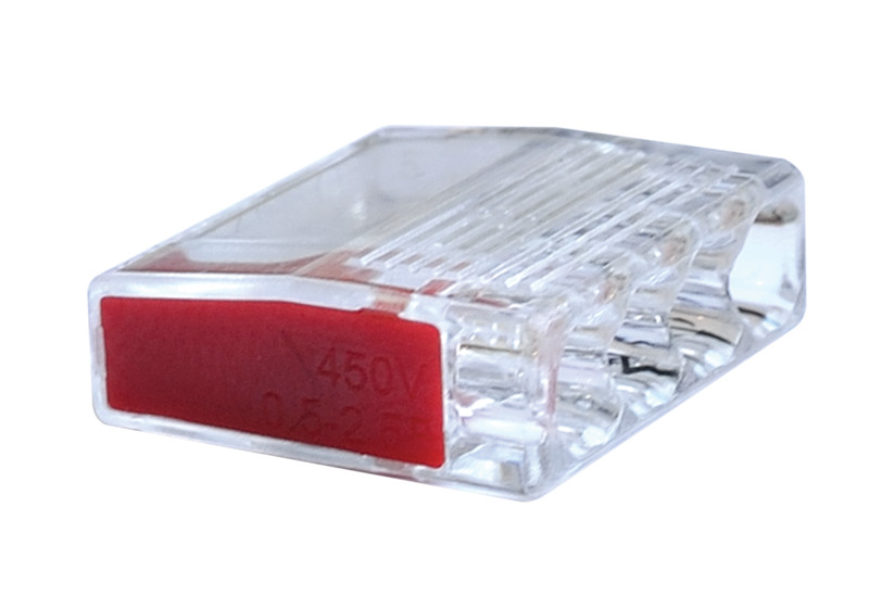 Csavar nélküli vezetékösszekötő, átlátszó/piros 4×0,5-2,5mm2, 450VAC, max. 16A