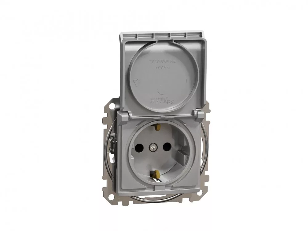 ÚJ SEDNA 2P+F csatlakozóaljzat biztonsági zsaluval, csapófedeles, rugós bekötés, 16A, alumínium
